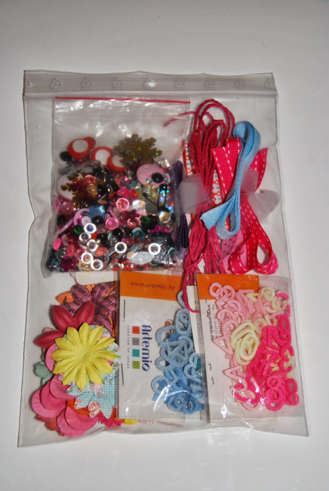 Perles de pluie, Oeillets, Petites décos, Sequins, Attaches parisiennes, Pierres, Brads, Rubans, Chiffres en feutrine Artemio, Fleurs